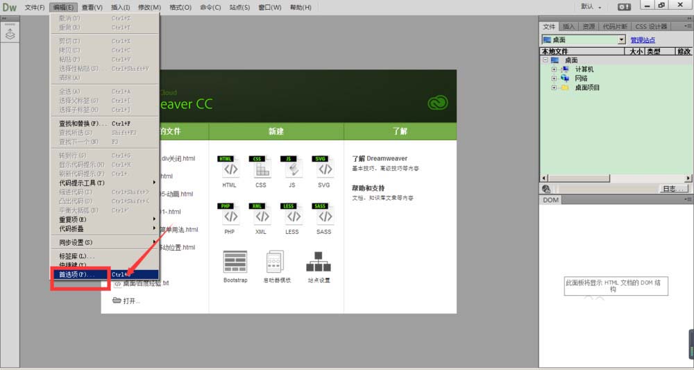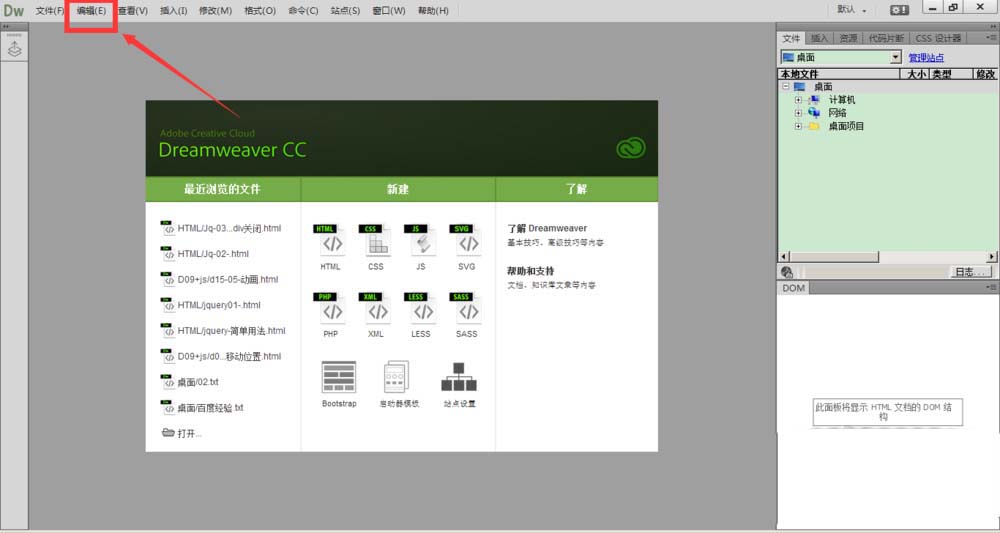 1、打開Dreamweaver軟件,然后選擇菜單欄中的-編輯菜單,如圖所示
