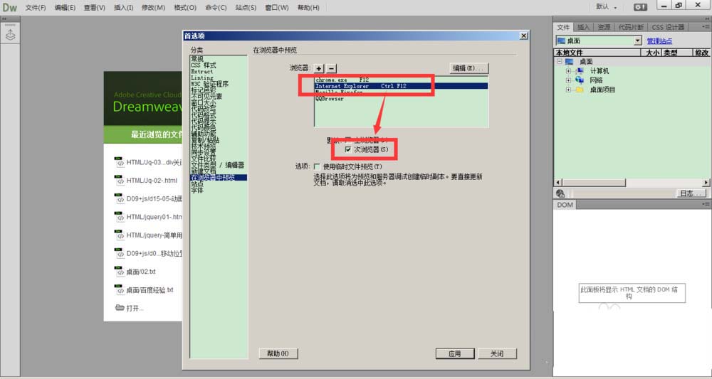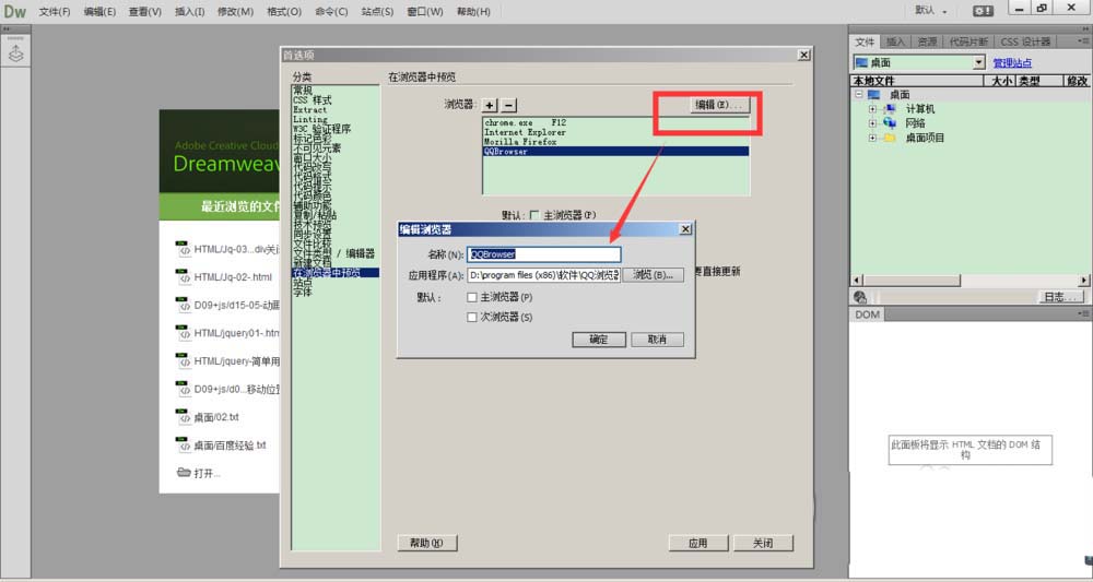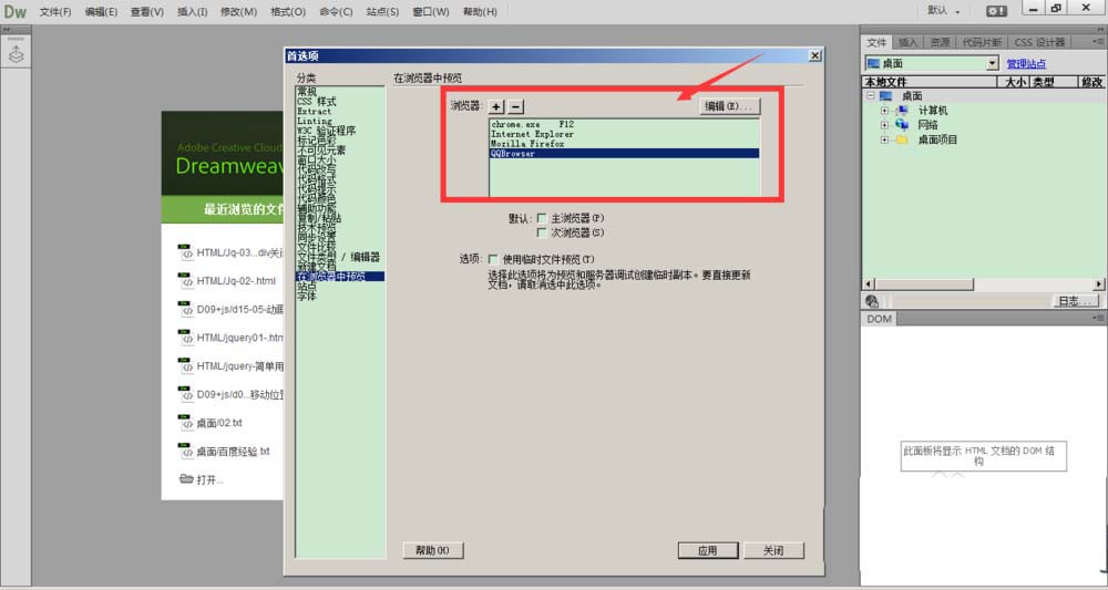 Dreamweaver怎么添加本地的瀏覽器為測試瀏覽器?