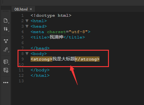 3、這樣就建立了一個strong標簽,中間是文字內容區域,可以輸入自己的文字