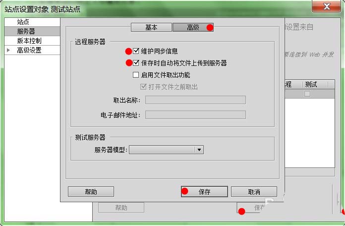 4、測試成功之后設置高級選項,將前兩項打鉤,點擊【保存】完成對服務器的設置。