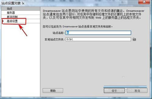 6、在“站點(diǎn)設(shè)置對象”窗口左邊的菜單里單擊“高級設(shè)置”。