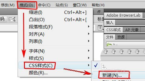 4、將插入點放在文檔中,然后在菜單欄單擊“格式”,在彈出的下拉菜單中選擇“CSS樣式”—“新建”