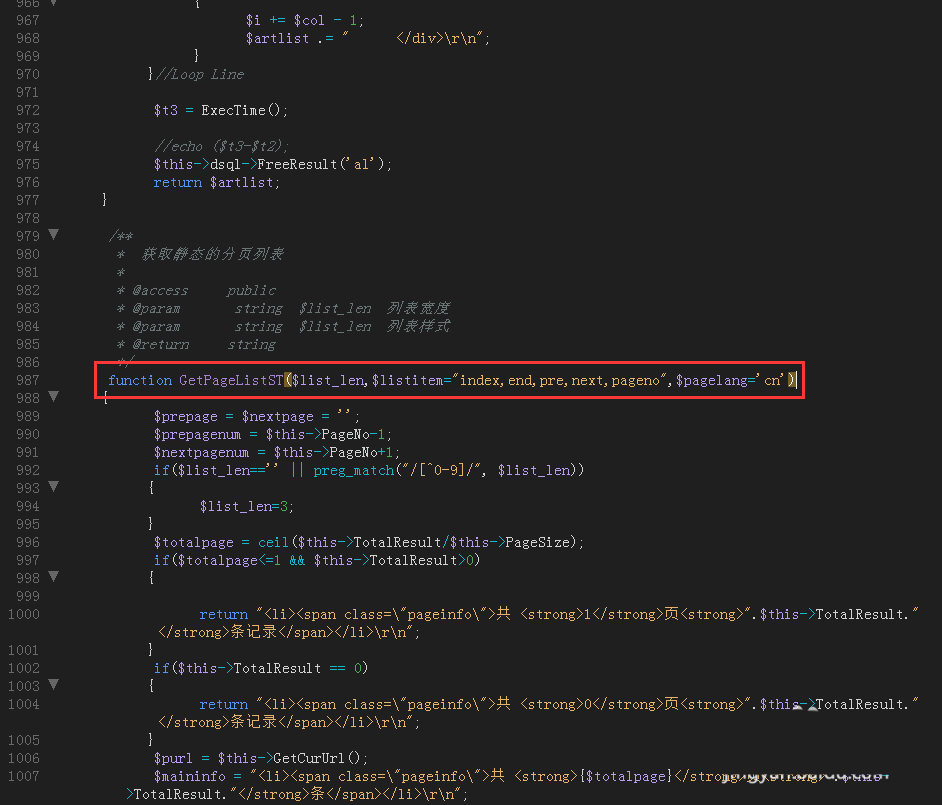 2、繼續(xù)找到(約528行)$list_len = trim($ctag->GetAtt("listsize"));在其下面加上一個新行$pagelang = trim($ctag->GetAtt("pagelang"));