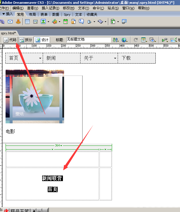 2、首先選擇新聞聯營首頁,在單擊代碼。