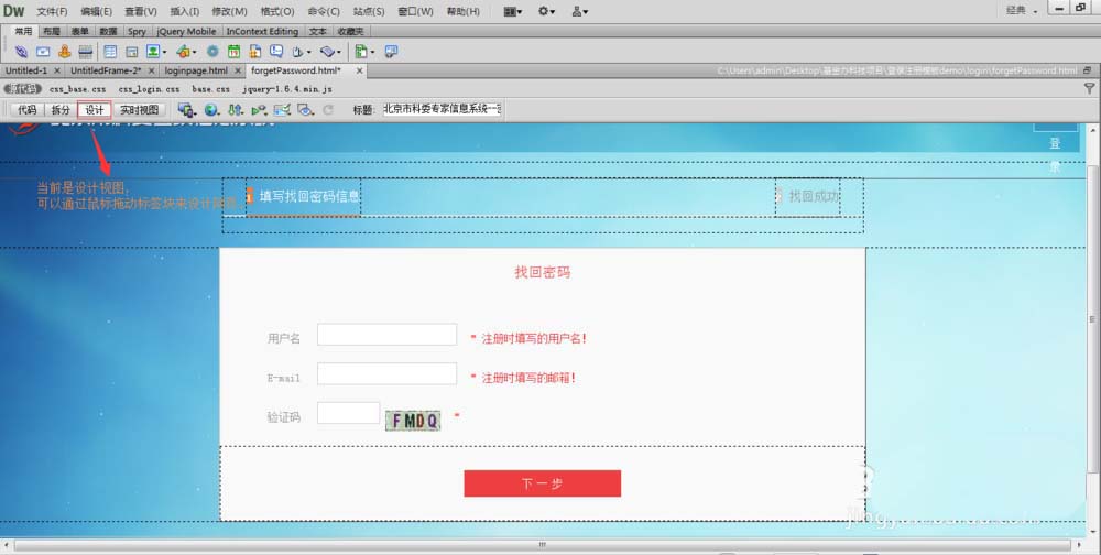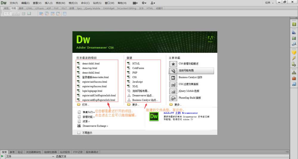 2、打開Dreamweaver開始做原型