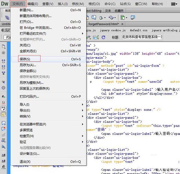點擊菜單中的“文件”——》選擇“保存”,或者按快捷鍵ctrl+s保存。