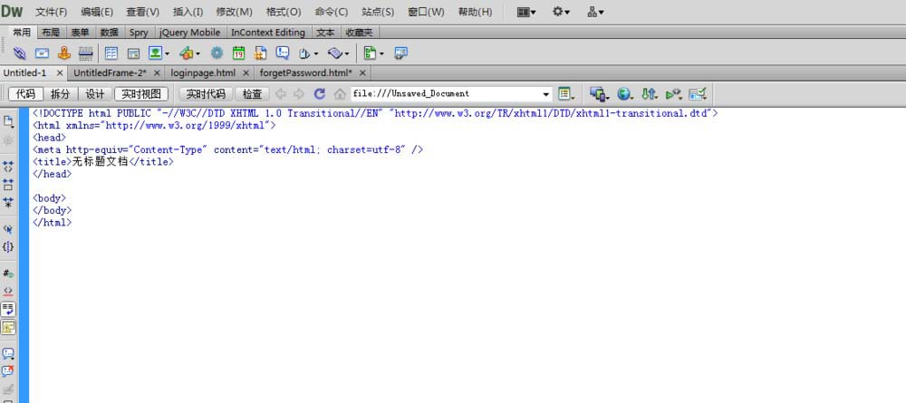 Dreamweaver新建的HTML頁面已經有了<html><head><title><body>這些基本的標簽,我們可以在這個基礎上編輯,要引入的css文件和JavaScript文件放到<head>標簽中。