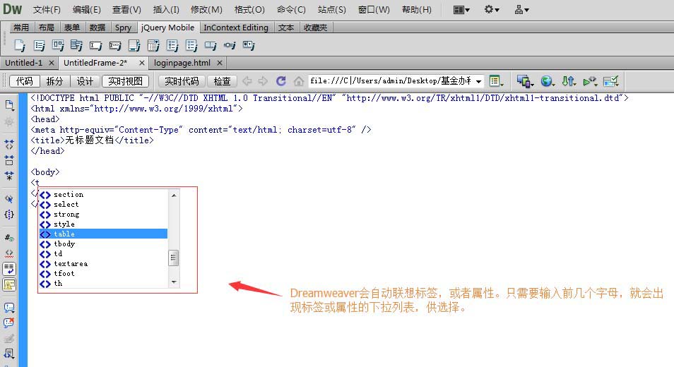 Dreamweaver會自動聯想標簽,屬性或關鍵字等,所以只需要輸入前幾個單詞,就會自動彈出選擇下拉框。方便編程人員快速編碼。