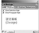 (如圖3)這里包括“css styles”、“html styles”、“behaviors”3個選項卡。基本使用方法與dw 4中相同。