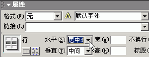 4.在屬性面板上,設置“td”標簽(單元格)水平“居中對齊”,垂直設置為“中間”。