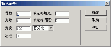 1.打開文檔,插入一個一行一列的表格,寬牙為100%,單元格填充,間距,邊框都為0。