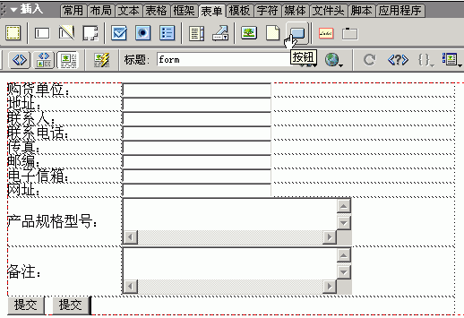 1.將插入點(diǎn)放在希望表單出現(xiàn)的位置。選擇“插入”>“表單”,或選擇“插入”欄上的“表單”類別,然后單擊“表單”圖標(biāo)。