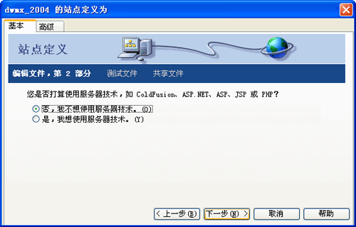 單擊“下一步”。出現(xiàn)向?qū)У南乱粋€界面,詢問您是否要使用服務(wù)器技術(shù)。