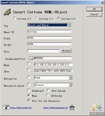 mask(蒙板層)、 skin (皮膚)、navigation(導航模式)、 navigation speed(導航速度)、 show splash(顯示噼嚦濺潑聲)、 menu(菜單)、 3d-border (3d邊界顯示)、wait for all resources(等所有資源下載后顯示)選項。