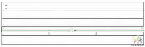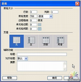 一個三行一列的表格即出現在文檔中。該表格的寬度為 700 像素,邊框、單元格邊距和單元格間距均為 0。