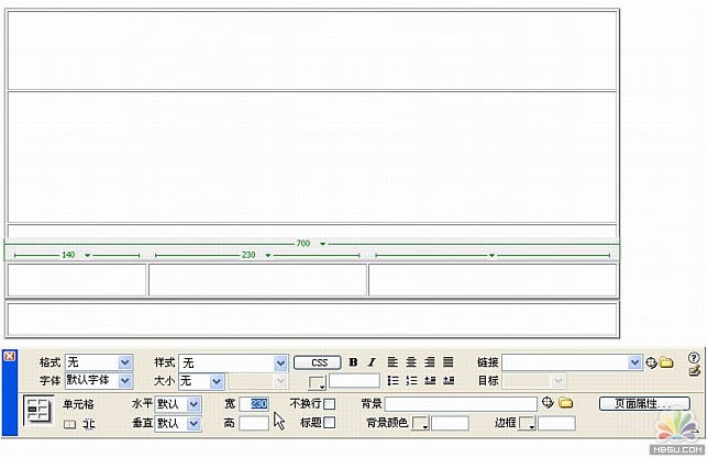 在"屬性"檢查器的"單元格寬度"文本框中輸入 230,然后按 enter 鍵 (windows) 或 return 鍵 (macintosh)。