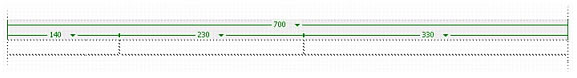 假如已打開表格選擇器("查看">"可視化助理">"表格寬度"),將能看到剛才在各個表格列上輸入的三個像素值。