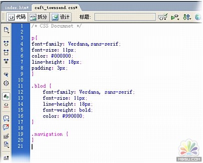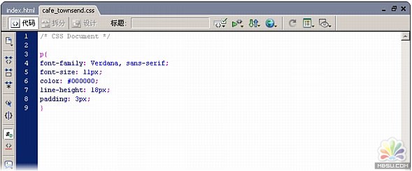 單擊 cafe_townsend.css 文件以顯示該文件。您將看到,dreamweaver 已經(jīng)將您指定的所有屬性添加到該文件中。