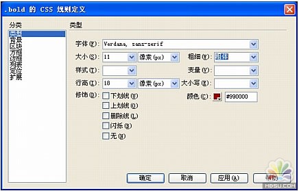 在"css 規(guī)則定義"對(duì)話框中,執(zhí)行下面的操作: