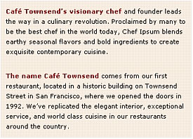 在"文檔"窗口中,選擇第一段中文本的前四個(gè)單詞:cafe townsend's visionary chef。