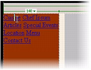 在"文檔"窗口中,cuisine 文本的外觀完全發(fā)生了變化。根據(jù)您在上一節(jié)中為 .navigation 規(guī)則所定義的屬性,該文本的格式現(xiàn)在已被設(shè)置為導(dǎo)航條按鈕。