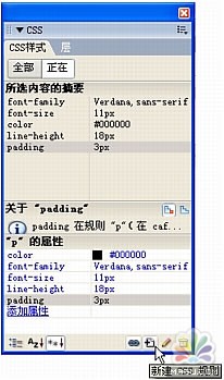 在"css 樣式"面板中,單擊面板右下角的"新建 css 規(guī)則"。