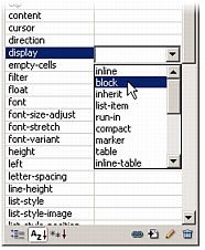 找到 display 屬性(可能需要向下滾動(dòng)),在右邊的列中單擊一次,然后從彈出式菜單中選擇 block。