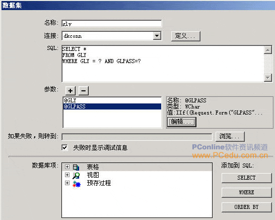 (5)在數據集gly高級對話框中,將sql命令改為如圖8-4所示。