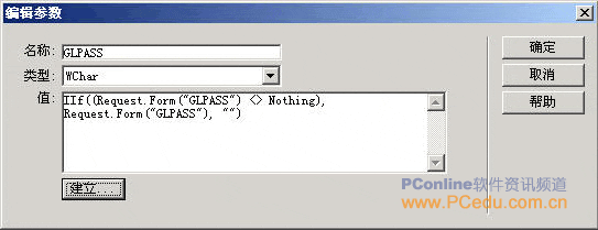 (4)點擊“高級”按鈕,添加參數@glpass,如圖8-3所示。
