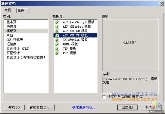 (1)打開【文件】→【新建】,打開【新文檔】的對話框,選擇“類別:”為“模板頁”,選擇“模板頁:”為“asp.net vb 模板”,結(jié)果如圖4-1-2所示。