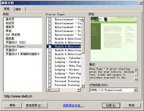 2,新建文檔對話框,注重具有了xslt的選項(同時新建的文檔類型默認為xhtml 1.0 transitional)