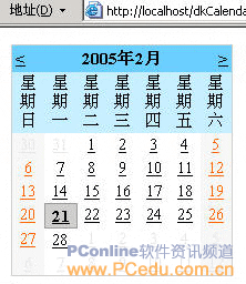 圖10-4 dkcalendar.aspx在ie中的瀏覽