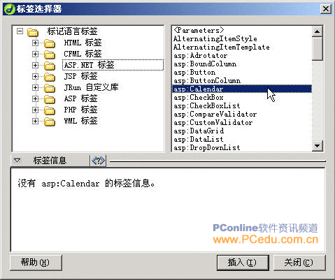 圖10-2 插入“asp calendar”標(biāo)簽