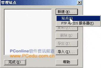 (1)啟動dreamweaver mx 2004,切換到【文件】面板,單擊“治理站點”,單擊按鈕“新建”,如圖2-5所示。