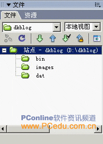 (1)先來看doking’s blog網站的布局,根目錄存放.aspx、.htm文件;bin目錄是用于部署dreamweaverctrls.dll控件;dat目錄用于存放數據庫;images目錄存放有關圖片文件。在打開文件面板,在“站點—dkblog”下分別新建目錄bin、目錄dat、目錄images,結果如圖2-10所示。