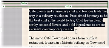 在"文檔"窗口中,選擇第一段中文本的前四個單詞:cafe townsend's visionary chef。