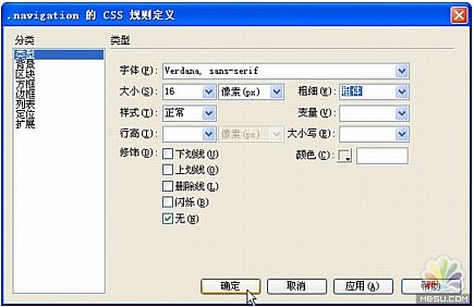 在"css 規(guī)則定義"對話框中,執(zhí)行下面的操作: