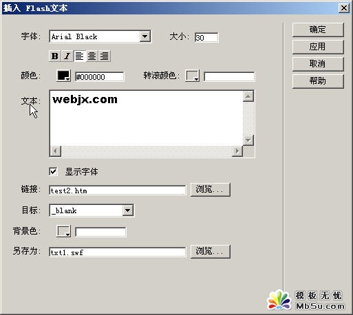 ( 2 )插入 flash 文本并輸入?yún)?shù),如圖3、4所示。