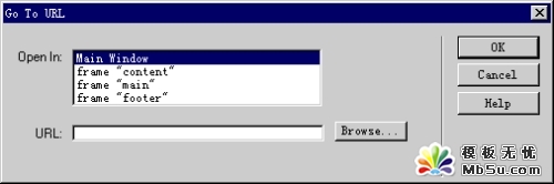 用 dreamweaver 的“ go to url ” behavior 更簡單。對話框顯示所有的框架,在下面的“ url ”欄填入相應的頁面就是。