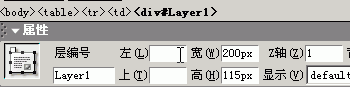 <div id="Layer1" style="position:absolute; width:200px; height:115px; z-index:1"></div>