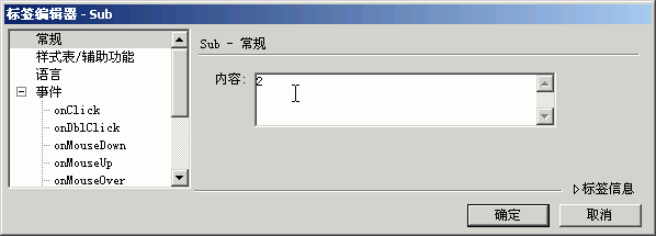 按照輸入上標的方法,在“標簽選擇器”中選擇sub標簽,單擊“插入”按鈕。