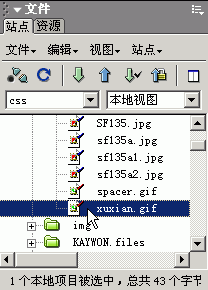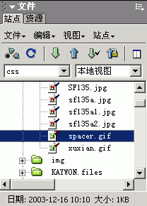2.在“站點(diǎn)”面板中,選中1×1象素透明圖像spacer.gif,并且把這個(gè)圖像拖到需要制作虛線的單元格中。這時(shí), 字符自動(dòng)消失。