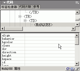 在網頁中,制作滾動字幕使用marquee標簽,假如用手寫的方法,實在是太麻煩了。從Dreamweaver MX開始,可以使用“標簽選擇器”插入各種標簽,并且可以使用“標簽檢查器”設置標簽的屬性值,它的功能類似于屬性面板,但是比屬性面板更強大。