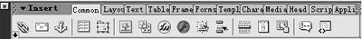 (如圖6)在DW MX界面的上方,是“Insert”選項,也就是以前的“Object”選項,但它的分類已經比DW 4要全面得多,也作了很多改進,比如“Media”選項卡中的“Flash Button”和“Flash Text”已經開始支持中文。 尤其值得一提的是它的“Application”選項卡,對于DW 4的用戶來說它比較生疏,但對于使用過DW Ultra DEV的人就會發現,它與DW Ultra DEV的Live很相似。它的作用有:建立記錄集;選擇綁定記錄的表格后重復區域;將某個記錄集中所有字段一次綁定在表格中,可以定制重復記錄數和表格的一些參數;將記錄集中的某個字段綁定到頁面;翻頁鏈接導航;當前記錄數;一次生成顯示頁和細節頁;增加記錄行為;修改記錄行為。這些,都是我們進行網頁后臺數據庫設計的利器。 Properties項
