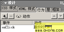 5.我們先設置激活滑動圖層的動作。選擇上展開這個按鈕,轉到行為面板,點擊在出來的菜單中選擇 [時間軸――播放時間軸] DW會彈出一個窗體,在上面的下拉菜單中選擇timeline1。