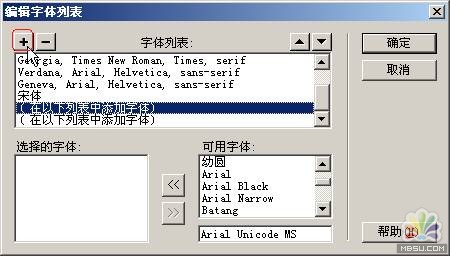 2.在編輯字體列表窗口中,點(diǎn)擊加號(hào)按鈕。