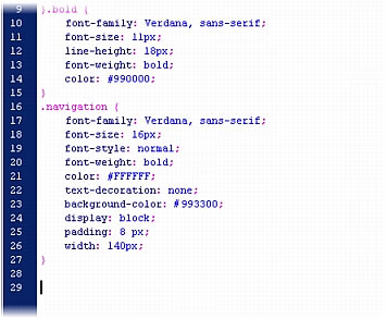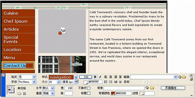 p{ font-family: Verdana, sans-serif; font-size: 11px; color: #000000; line-height: 18px; padding: 3px; } 當(dāng)您鍵入代碼時,Dreamweaver 將使用代碼提示為您建議一些選項,以幫您完成輸入。當(dāng)看到希望 Dreamweaver 為您完成鍵入的代碼時,請按 Enter 鍵 (Windows) 或 Return 鍵 (Macintosh)。 不要忘記在每行結(jié)尾處的屬性值后面加上一個分號。 完成后的代碼類似于下面的示例:  若要顯示該指南,請選擇"幫助">"參考",然后從"參考"面板的彈出式菜單中選擇"O'Reilly CSS 參考"。保存樣式表。 附加樣式表 當(dāng)您將樣式表附加到 Web 頁面中時,在樣式表中定義的規(guī)則將應(yīng)用到頁面上的相應(yīng)元素。例如,當(dāng)您將 cafe_townsend.css 樣式表附加到 index.html 頁時,將根據(jù)您定義的 CSS 規(guī)則設(shè)置所有段落文本(用 HTML 代碼中的標(biāo)簽設(shè)置格式的文本)的格式。 在"文檔"窗口中,打開 Cafe Townsend 的 index.html 文件。(如果該文件已打開,則請單擊它的選項卡。) 選擇在教程:向頁面添加內(nèi)容中粘貼到頁面中的第一段文本。  在"屬性"檢查器中查看,并確保使用段落標(biāo)簽設(shè)置了該段落的格式。 如果"屬性"檢查器中的"格式"彈出式菜單顯示"段落",則已使用段落標(biāo)簽設(shè)置了段落的格式。如果"屬性"檢查器中的"格式"彈出式菜單顯示"無"或其它內(nèi)容,則選擇"段落"來設(shè)置段落的格式。 對第二段重復(fù)第 3 步。 在"CSS 樣式"面板("窗口">"CSS 樣式")中,單擊位于面板右下角的"附加樣式表"按鈕。  在"附加外部樣式表"對話框中,單擊"瀏覽"并瀏覽到上一節(jié)創(chuàng)建的 cafe_townsend.css 文件。 單擊"確定"。 "文檔"窗口中的文本將根據(jù)外部樣式表中的 CSS 規(guī)則來設(shè)置格式。 研究"CSS 樣式"面板 "CSS 樣式"面板可讓您跟蹤影響當(dāng)前所選頁面元素的 CSS 規(guī)則和屬性,或影響整個文檔的規(guī)則和屬性,還可以在不打開外部樣式表的情況下修改 CSS 屬性。 請確保 index.html 頁在"文檔"窗口中打開。 在"CSS 樣式"面板("窗口">"CSS 樣式")中,單擊面板頂部的"所有",然后檢查您的 CSS 規(guī)則。 在"所有"模式下,CSS 面板向您顯示應(yīng)用到當(dāng)前文檔的所有 CSS 規(guī)則,不管這些規(guī)則是在外部樣式表中,還是在自身文檔中。您應(yīng)在"所有規(guī)則"窗格中看到兩個主要類別:一個<STYLE> 標(biāo)簽類別和一個 cafe_townsend.css 類別。 若未展開<STYLE> 標(biāo)簽類別,則請單擊加號 ( ) 展開該類別。 單擊正文規(guī)則。 值為 #000000 的 background-color 屬性出現(xiàn)在下面的"屬性"窗格中。  注意您可能需要折疊其它面板,如"文件"面板,以便看到完整的"CSS 樣式"面板,還可以通過拖動窗格之間的邊界來更改"CSS 樣式"面板的長度。 您在教程:創(chuàng)建基于表格的頁面布局中通過使用"修改頁面屬性"對話框設(shè)置了頁面的背景色。以此方式設(shè)置頁面屬性時,Dreamweaver 會編寫一個內(nèi)置于文檔的 CSS 樣式。 單擊加號 ( ) 展開 cafe_townsend.css 類別。 單擊 p 規(guī)則。 在外部樣式表中為 p 規(guī)則定義的所有屬性和值將顯示在下面的"屬性"窗格中。  在"文檔"窗口中,在剛設(shè)置格式的兩個段落中的任何位置單擊一次。 在"CSS 樣式"面板中,單擊面板頂部的"當(dāng)前",然后檢查您的 CSS 樣式。在"當(dāng)前"模式中,CSS 面板向您顯示當(dāng)前所選內(nèi)容的屬性的摘要。顯示的屬性與外部樣式表中 p 規(guī)則的屬性相對應(yīng)。 在下一節(jié)中,您將使用"CSS 樣式"面板創(chuàng)建新規(guī)則。使用"CSS 樣式"面板創(chuàng)建新規(guī)則比手動鍵入規(guī)則容易得多,后者如同最初創(chuàng)建外部樣式表時的操作一樣。 創(chuàng)建新的 CSS 規(guī)則 在本節(jié)中,您將使用"CSS 樣式"面板創(chuàng)建自定義的 CSS 規(guī)則或類樣式。類樣式使您可以設(shè)置任何范圍或文本塊的樣式屬性,并可以應(yīng)用到任何 HTML 標(biāo)簽。有關(guān)不同類型的 CSS 規(guī)則的更多信息,請參見了解 CSS。 在"CSS 樣式"面板中,單擊面板右下角的"新建 CSS 規(guī)則"。  在"新建 CSS 規(guī)則"對話框中,從"選擇器類型"選項中選擇"類"。該選項應(yīng)該是默認選中的。 在"名稱"文本框中輸入 .bold。 確保在單詞"bold"前鍵入句點 (.)。所有類樣式必須以句點開頭 在"定義在"彈出式菜單中,選擇 cafe_townsend.css。該文件應(yīng)該是默認選中的。  單擊"確定"。 出現(xiàn)"CSS 規(guī)則定義"對話框,表示您正在 cafe_townsend.css 文件中創(chuàng)建一個稱為 .bold 的類樣式。 在"CSS 規(guī)則定義"對話框中,執(zhí)行下面的操作: 在"字體"文本框中,輸入 Verdana, sans-serif。 在"大小"文本框中,輸入 11,并在緊靠其右的彈出式菜單中選擇像素。 在"行高"文本框中,輸入 18,并在緊靠其右的彈出式菜單中選擇像素。 從"粗細"彈出式菜單中選擇"粗體"。 在"顏色"文本框中,輸入 #990000。  提示有關(guān) CSS 屬性的更多信息,請參見 Dreamweaver 中包含的 O'Reilly 參考指南。若要顯示該指南,請選擇"幫助">"參考",然后從"參考"面板的彈出式菜單中選擇"O'Reilly CSS 參考"。 單擊"確定"。 單擊"CSS 樣式"面板頂部的"所有"按鈕。 若未展開 cafe_townsend.css 類別,則單擊該類別旁邊的加號 ( ) 按鈕。 您可以看到,Dreamweaver 已將 .bold 類樣式添加到在外部樣式表中定義的規(guī)則列表中。如果您在"所有規(guī)則"窗格中單擊 .bol