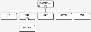 完成后切換到導(dǎo)航視圖,現(xiàn)在要將剛才創(chuàng)建的網(wǎng)頁添加到當(dāng)前導(dǎo)航結(jié)構(gòu)中。單擊“文件夾列表”中的網(wǎng)頁,再將其拖動(dòng)到結(jié)構(gòu)中所需的位置,比如放在“興趣”下面(如圖2)。如果要修改此網(wǎng)頁的標(biāo)題,可以用鼠標(biāo)右鍵單擊網(wǎng)頁,再單擊快捷菜單上的“重命名”即可修改當(dāng)前網(wǎng)頁的名稱。