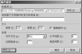 點(diǎn)擊“插入”菜單,然后選“高級(jí)”中的“插件”(如圖1),這時(shí)會(huì)出現(xiàn)“插件屬性”對(duì)話框,這里的設(shè)置就容易多了(如圖2):