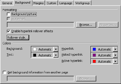 background picture(背景圖片):設定網頁使用的背景圖片,單擊"browse"選擇圖片地址.勾取"watermark"復選框,應用水印效果.